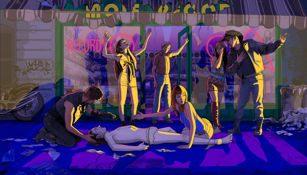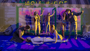 Accompanied by the enchanting melodies of Robert Wyatt’s album, Rock Bottom, Bob and Alif enjoy an idyllic time on the beach, indulging in art, flirtation, and recreational drugs. Amidst surreal hallucinations, the boundaries between past and future blur, and the narrative shuttles back and forth between New York and Mallorca.