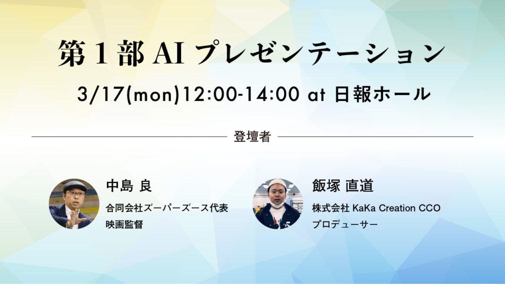 これまでのシンポジウムはテクノロジー、著作権、雇用が議題になっていたと思いますが、NIAFFでは「芸術表現におけるAI・生成AIの役割」というクリエイティブな切り口から、クリエーター側から見た今後の創作に関してを中心に展開します。