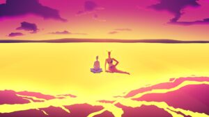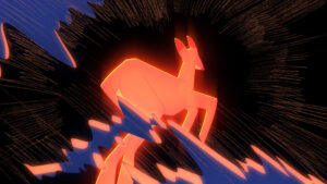 A lonely young programmer, Vega, falls in love with a beautiful popstar water deer. They sing a song of happiness together in fantasy. The pigeons constantly drag them back into the real world, and Vega’s longing for warmth is in need of being sated.