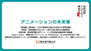 「文化芸術活動基盤強化基金(クリエイター等支援事業(育成プログラム構築・実践))助成金」に関する取組と、アニメを通した新潟での産官学連動活動、および映画祭をフックとした国際化へ向けての展開について。